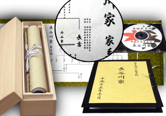| 巻物家系図(表装) 桐箱、収集戸籍、家系図データCD | ¥143,000(税込) |